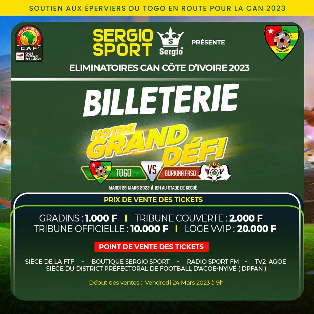 Togo-Burkina (manche retour) : Sergio Sport dévoile prix et points de vente des billets d’entrée