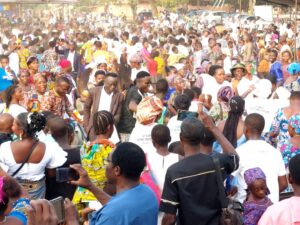 Les différents points du programme sont séparés d’intermèdes, moments de chants et de danses à la gloire de l’Eternel, où la foule toute déchaînée, prenait d’assaut la pelouse synthétique du Stade municipal, mouchoirs blancs en main.