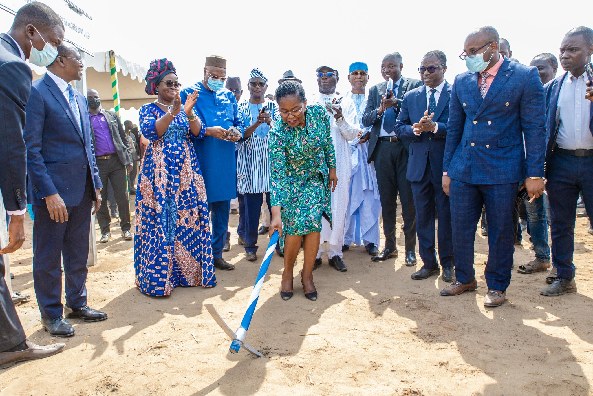 Mme le Premier ministre Victoire Dogé a donné le premier coup de pioche en guise de lancement officiel des travaux d’aménagement et de réhabilitation de la route nationale numéro 14 Sokodé-Tchamba-Kabolé-Frontière Bénin.